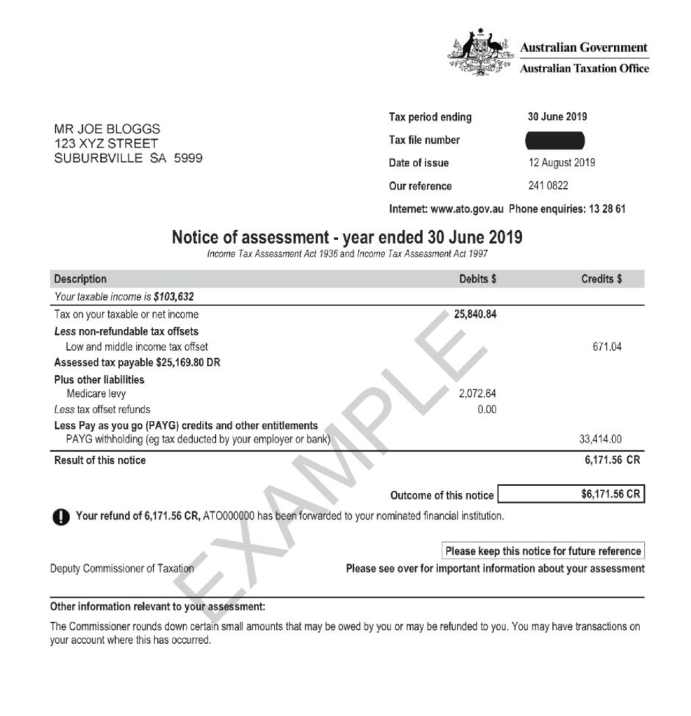 Below is an example of what the Notice of Assessment document looks like.